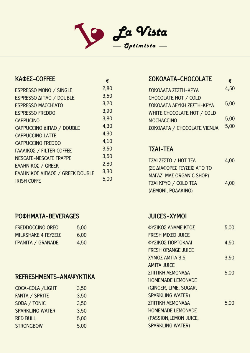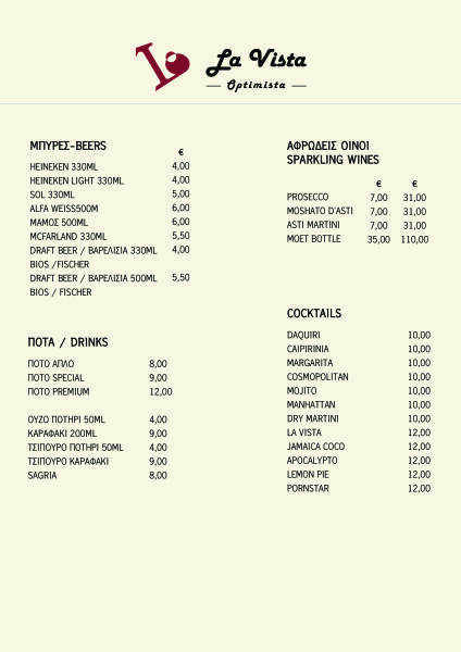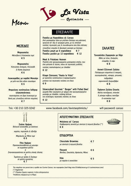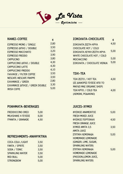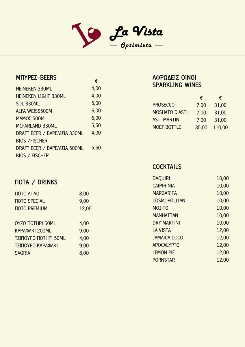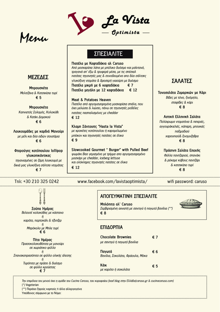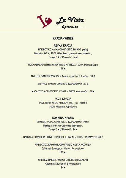 LA VISTA OPTIMISTA MENU